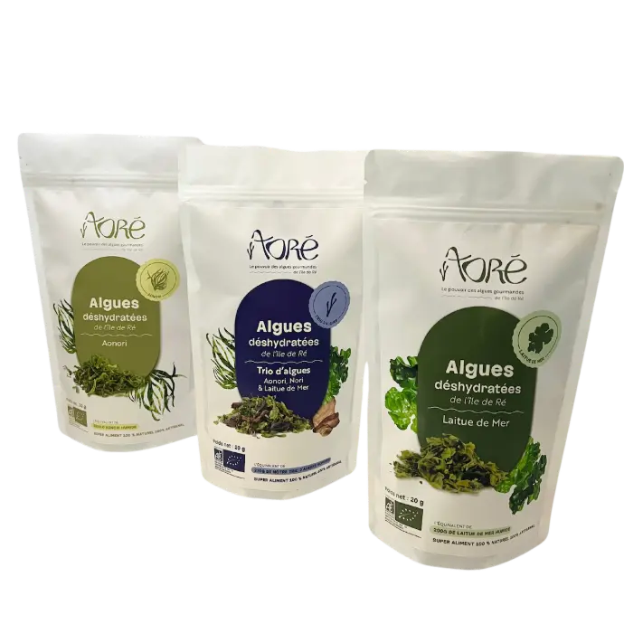Nos algues sont déshydratées uniquement au soleil dans des serres protégées des rayons UV pour conserver nutriments et couleurs des algues.